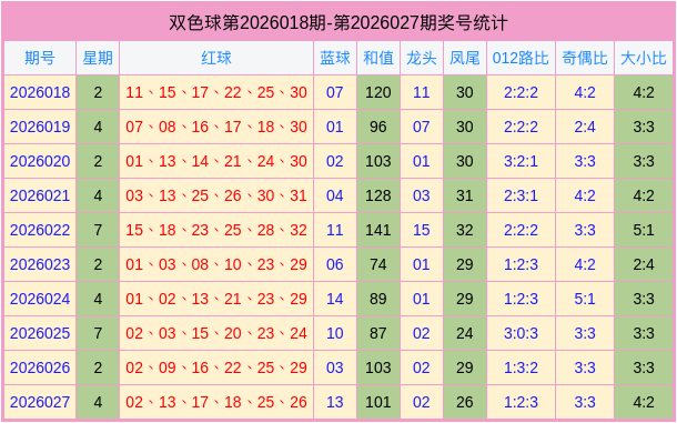 双色球2026027开奖号码为:02、13、17、18、25、26 + 13。